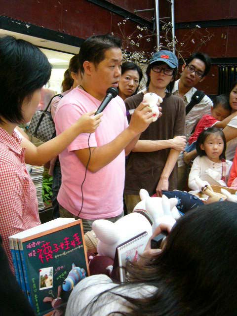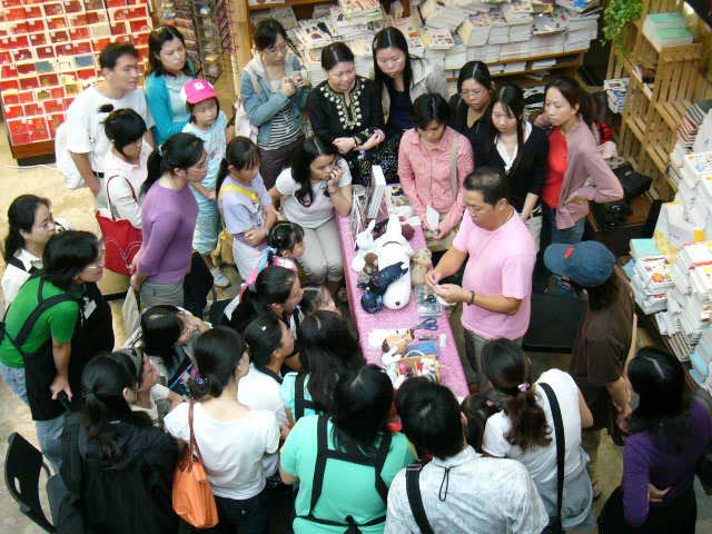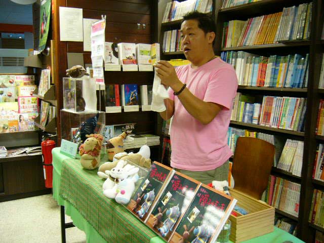 店長及電源跟出版社行銷,開始點內廣播即拿著DM跟娃娃