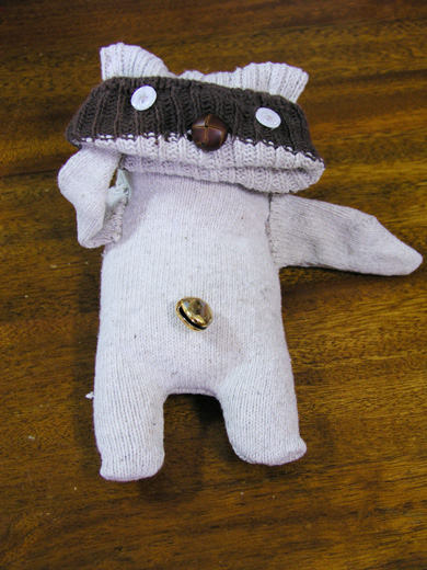 最近發覺襪子很難作成貓 左試右試 有那麼一點像 手放在嘴裡,彷彿試剛吃掉一條金魚 意遊味盡 找顆沙磨過的鈴噹,當肚臍 吃飽了,還得讓它半躺 舒服及了 好了 換我去吃飯想溫飽吧