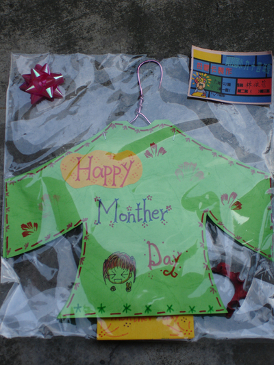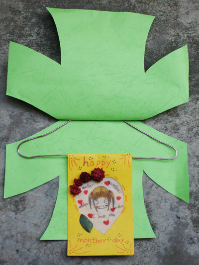 軟鐵絲彎成的衣架 一件衣服作成卡片 全部的感恩 全部在裡邊 還有她貼心的小插畫喔
